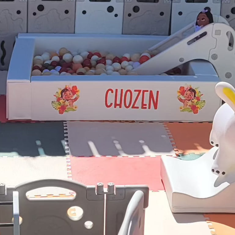 Your choice of White, or Primary Color Ball Pit.This rental will also include a slide, balls, hopper & up to 20 (24x24") mats to match your theme. IF YOU'D LIKE CUSTOMIZATION BE SURE TO NOTE ON YOUR INQUIRY FORM. ($40 UPCHARGE) ADD ON GATES ($35 UPCHARGE) Taxes & mileage are not included in pricing. To book please reference the book us button on our home page to complete your inquiry form.